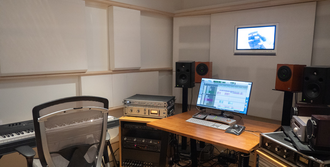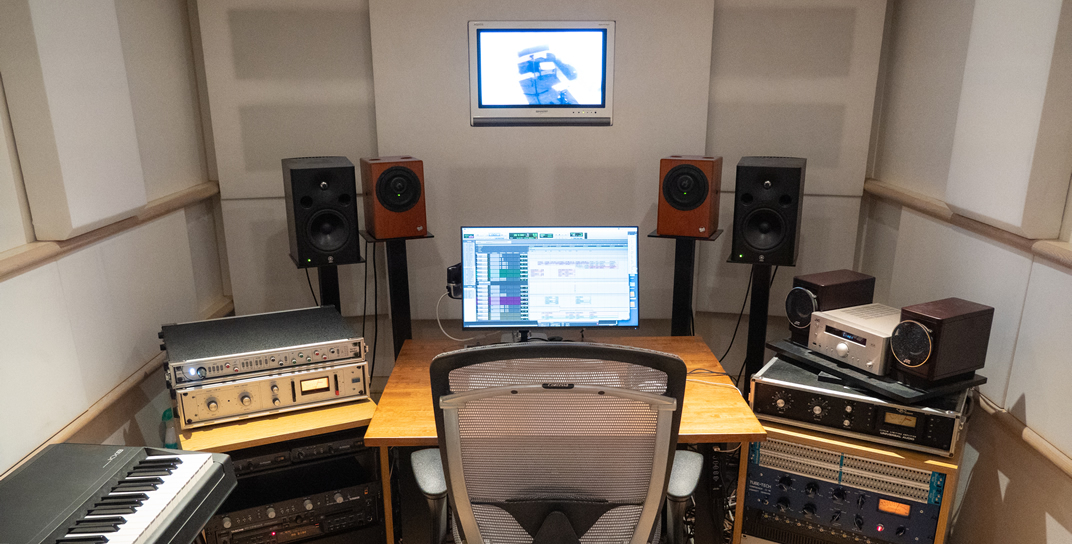 branch_Aと同等のスペックをもつ、コンパクトサイズのコントロールルーム。少人数でのレコーディングやトラックダウン、マスタリング作業は勿論のこと、branch_Aご利用時にbooth_01,02と連動して、第3のブースとして使用することもできます。ムービーとのシンクロにも対応しています。